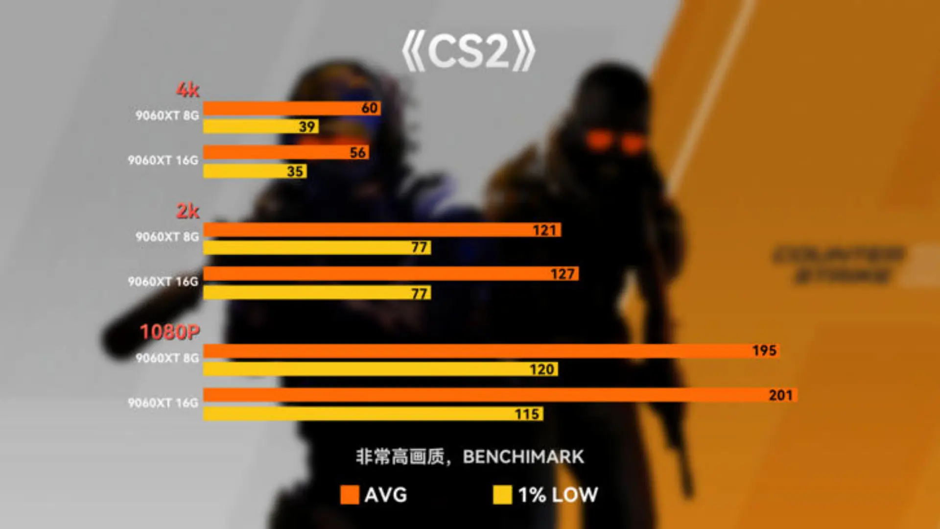 • 《CS2》:1080P非常高画质下,8G和16G平均帧都是200+,1% low帧也差不多。果然,CS玩家狂喜,8G显存够用实锤!